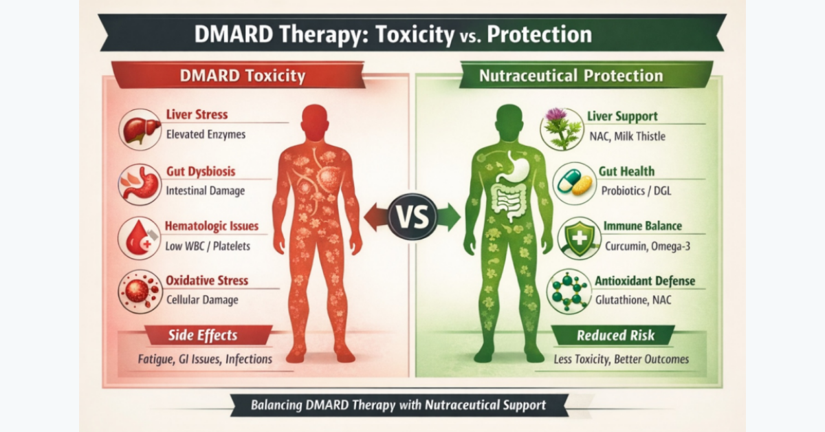 In recent years, clinicians and researchers have begun exploring nutraceutical adjunct protocols—carefully selected dietary supplements and natural bioactive compounds that can complement DMARD therapy.